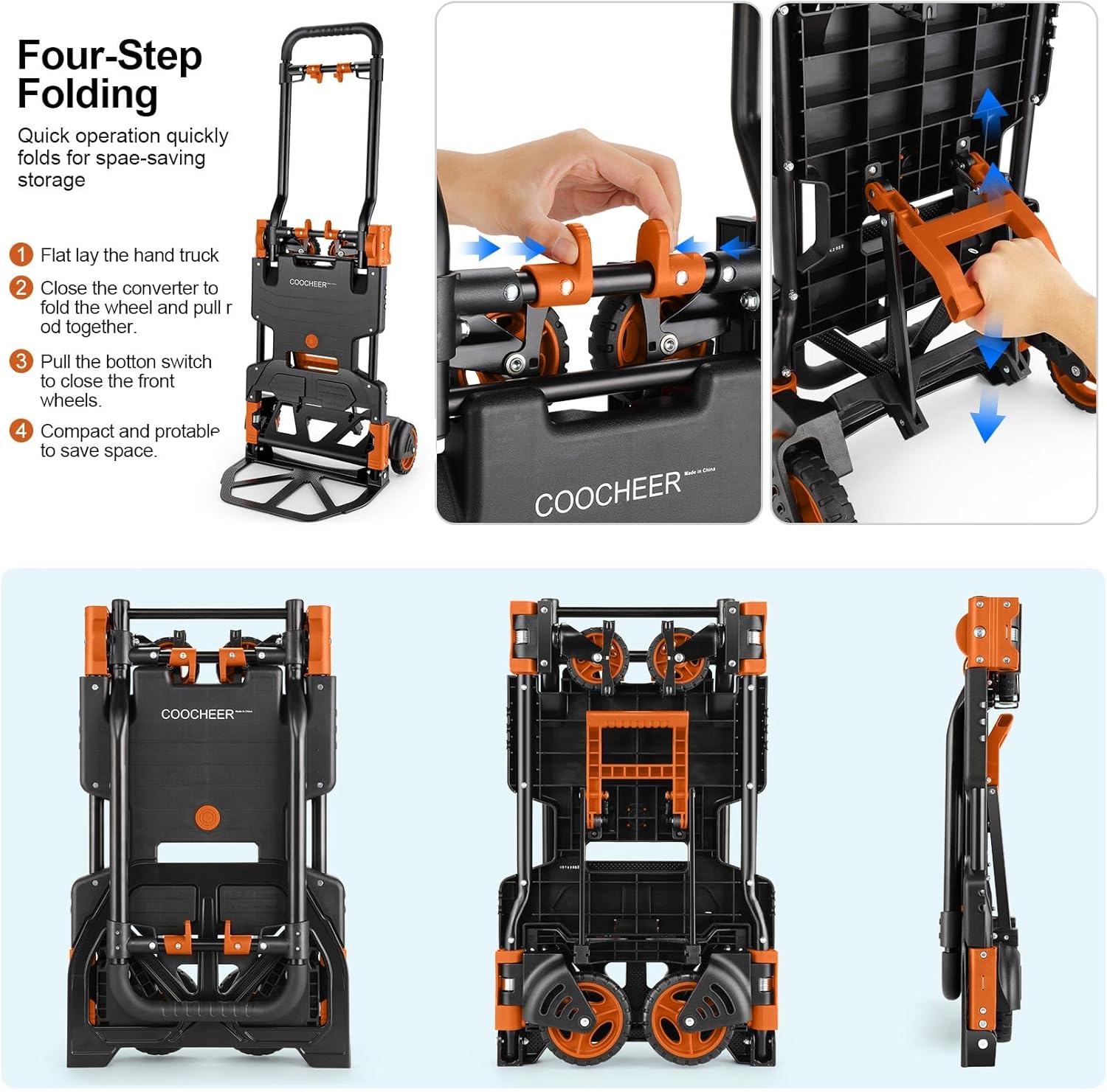 COOCHEER 330LB Folding Hand Truck Heavy Duty Carrying, 2-in-1 Dolly Foldable