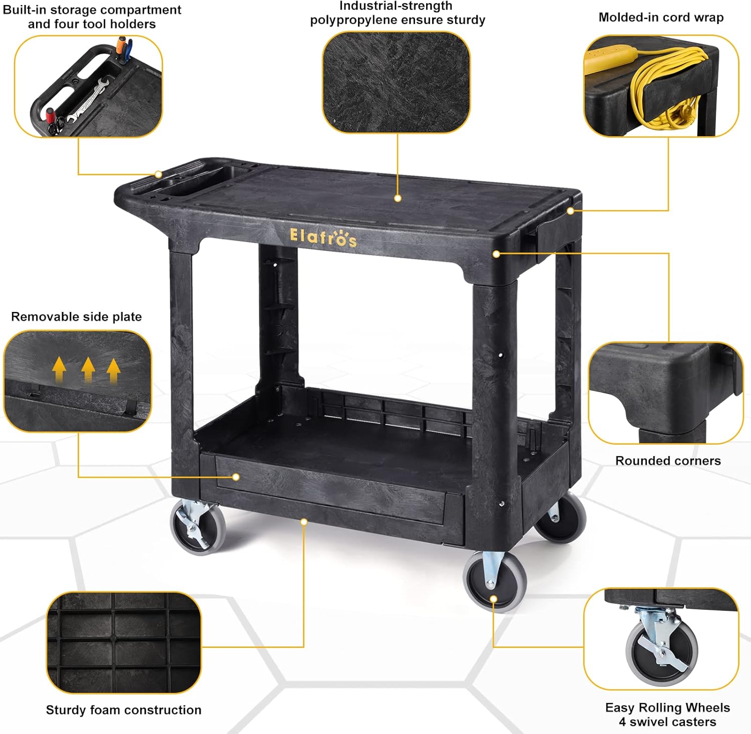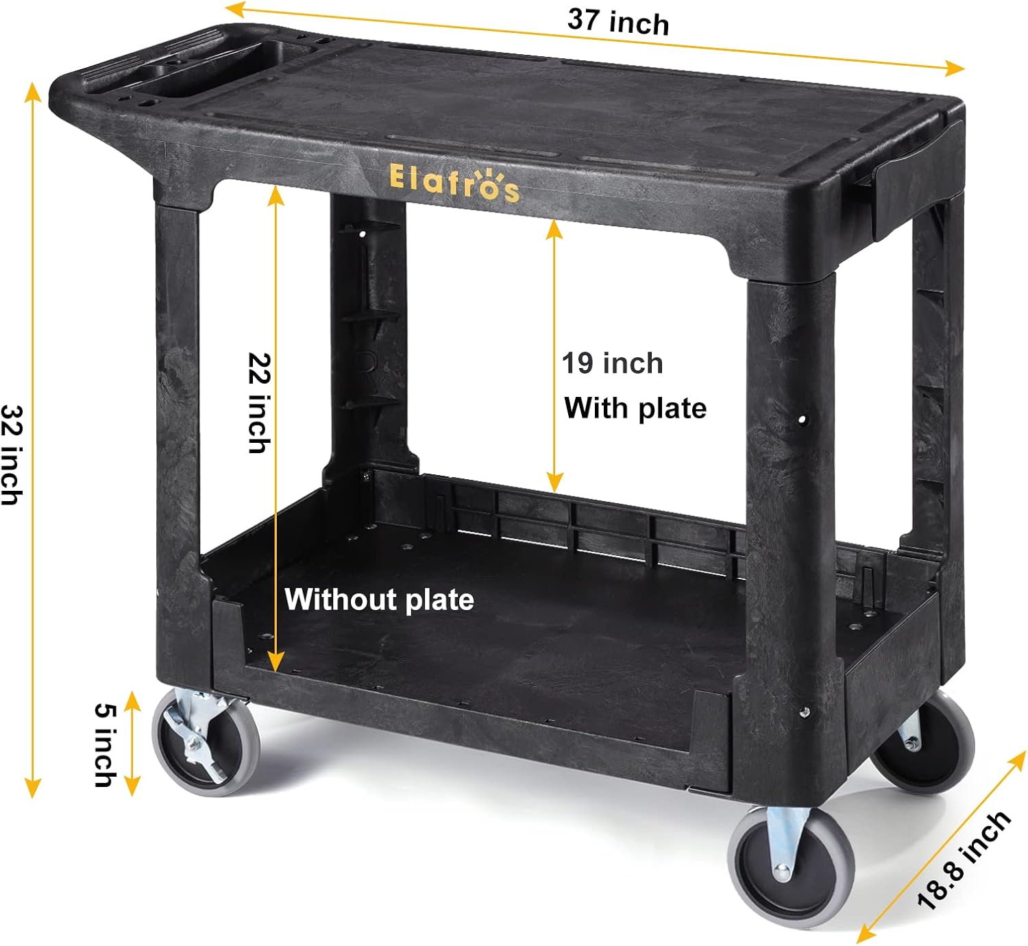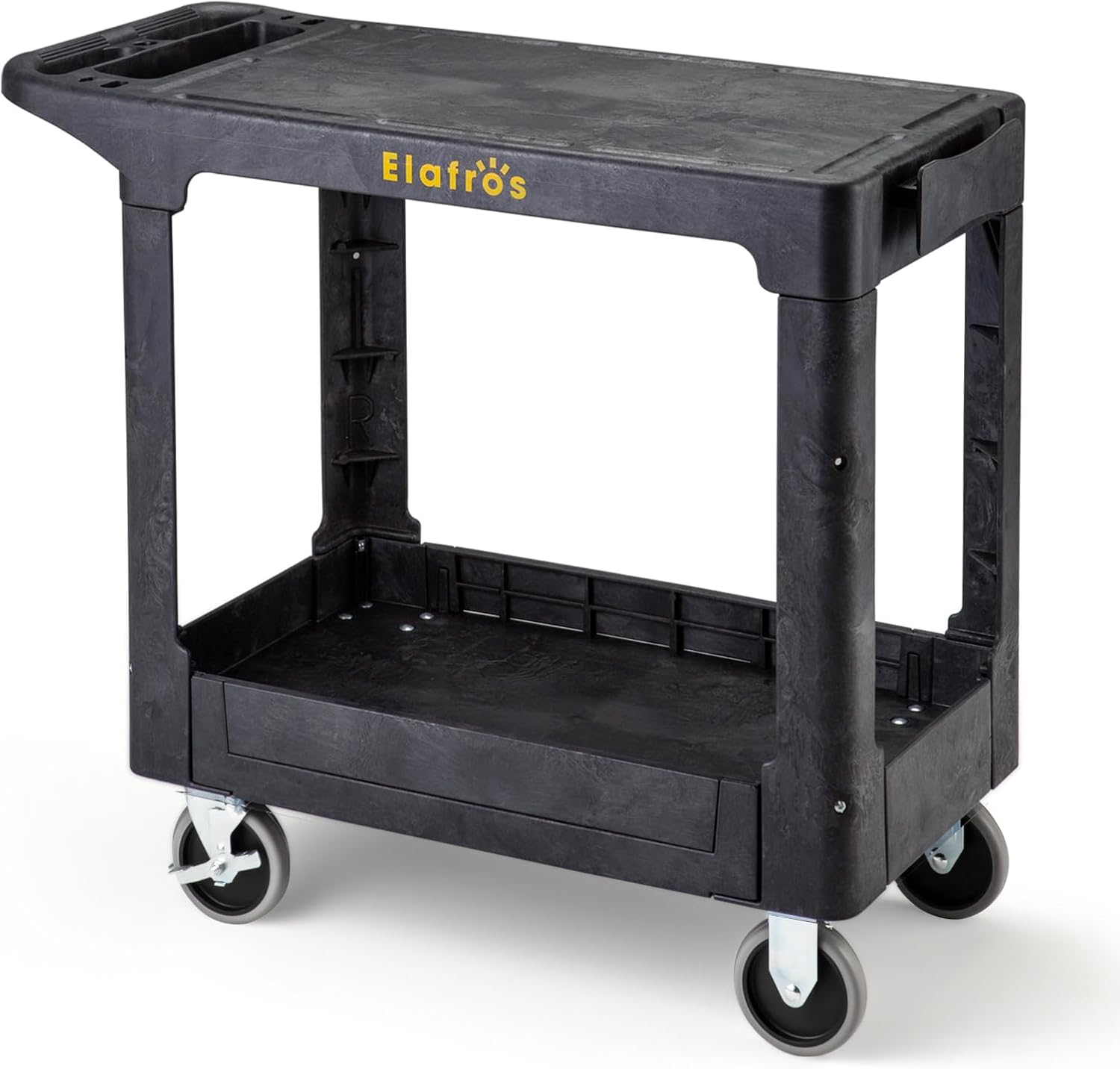 ELAFROS Heavy Duty Plastic Utility Cart, 37 x 18.8 in, Flat Top, Swivel Wheels, 550 lbs Capacity, Black