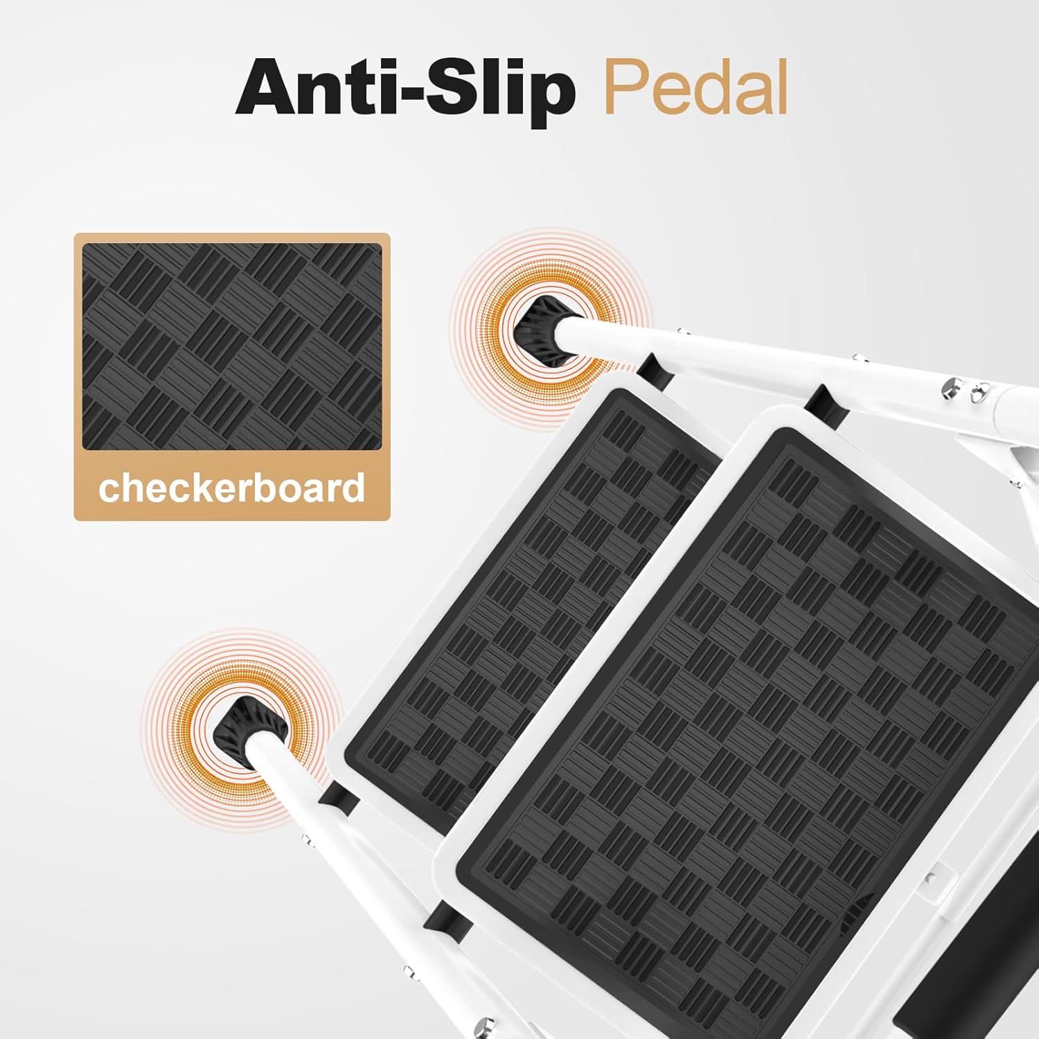 HBTower 2 Step Ladder,2 Step Stool for Adults Folding Step Stool with Cushioned Handle with Wide Anti-Slip Pedal Ergonomic Design