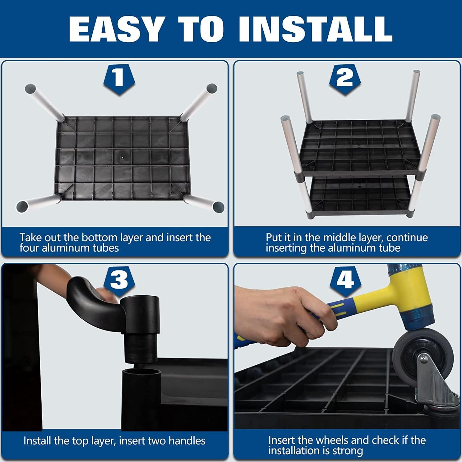 Service Cart with Wheels Lockable Large Size, Plastic Restaurant Cart Heavy Duty, Utility Commercial Cart for Office, Warehouse, Foodservice,40.1" L x 19.2" W x 38.5" H. Black (Large)