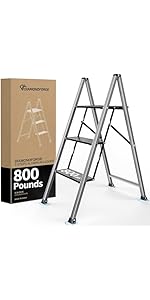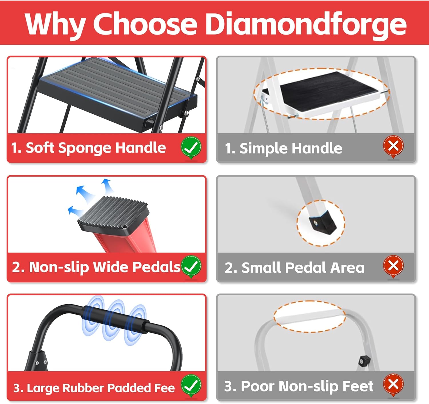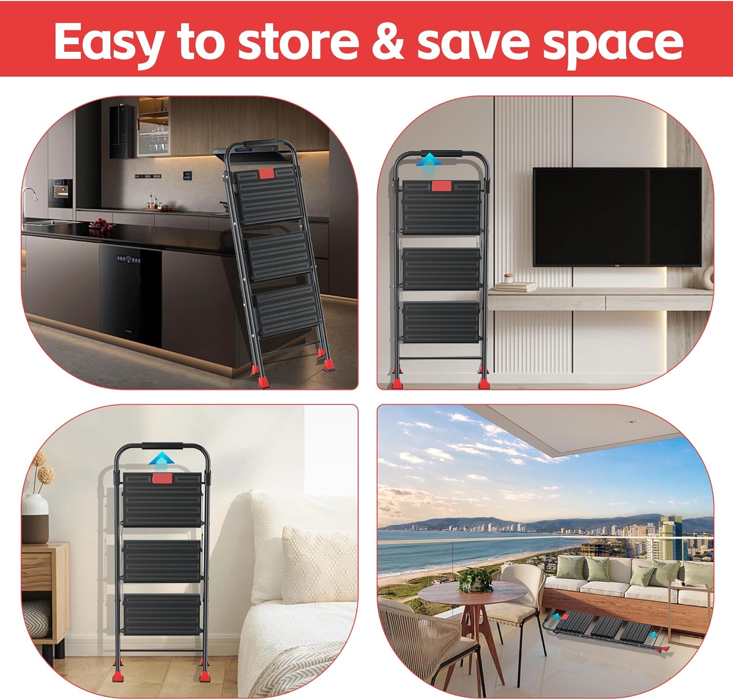 Step Ladder Foldable Folding Stool - for Home Adults Kitchen 3 Stepping Extension Tall Heavy Duty with Handrails - Closet Stepstool Stair Ladders Extendable Stepladder for Indoor House 800Lbs