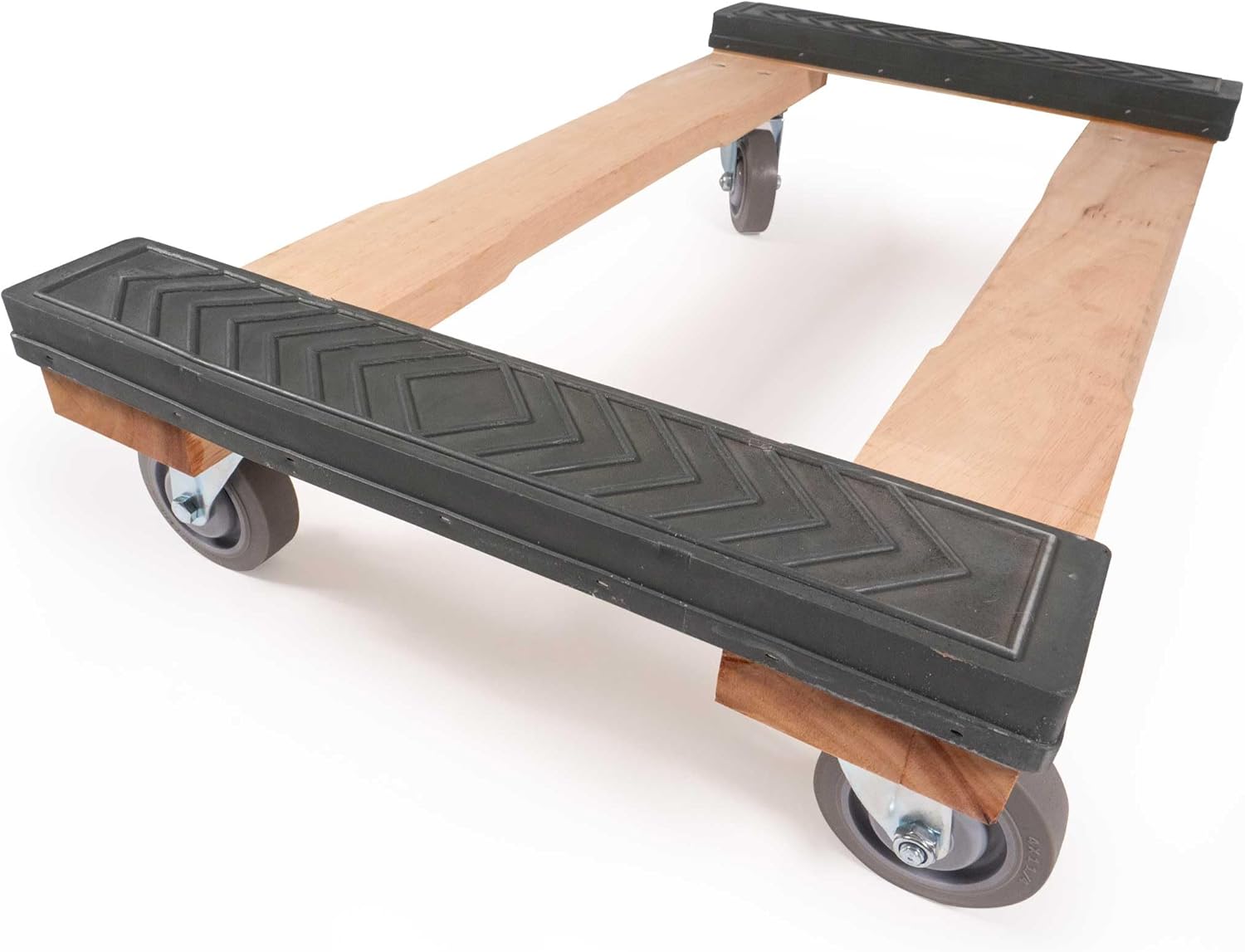 Each moving dolly features raised ribbed rubber cap edges, designed to securely grip heavy items. The ribbed texture ensures a strong hold while providing cushioning to prevent scuffing or marring.